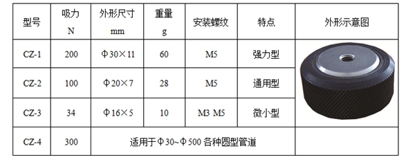 磁座 CZ系列磁座用于測量鋼鐵結(jié)構(gòu)且不宜鉆安裝螺孔的試驗件(如機(jī)床、發(fā)動機(jī)等)的振動時,安裝加速度傳感器使用。